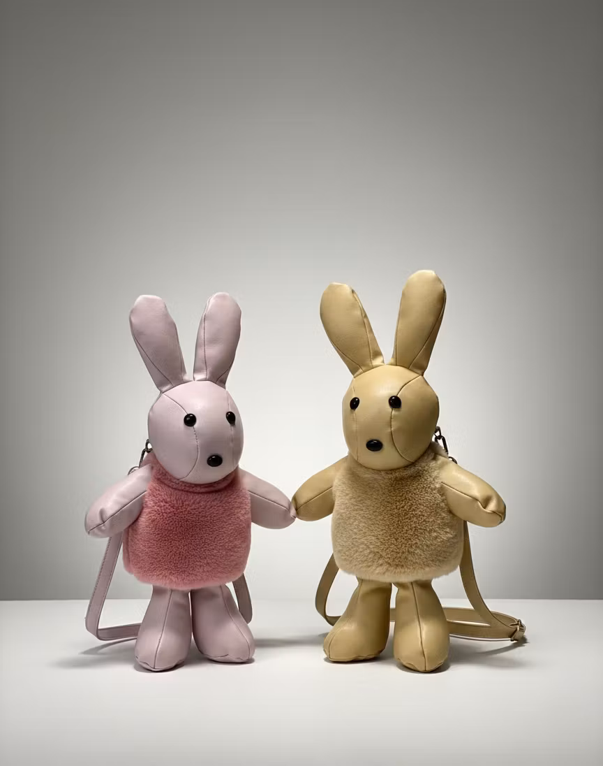 Ge din outfit en unik och hjärtlig touch med våra exklusiva kaninformade väskor. Dessa väskor är inte bara ett tillbehör, utan en personlig stilmarkör som utstrålar kreativitet och värme.