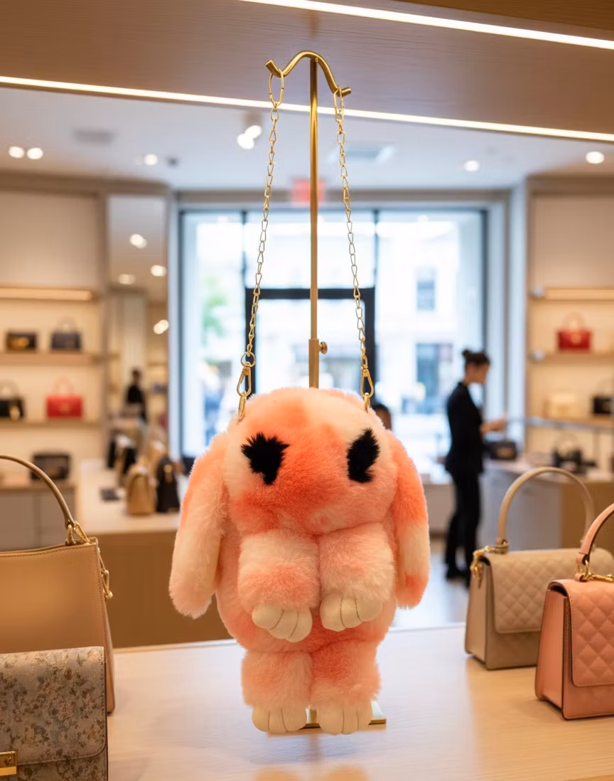 Möt din nya favoritaccessoar! Denna unika handväska är formad som en kramgo kanin i en vacker blandning av rosa och vita nyanser. Väskan är tillverkad av högkvalitativ, mjuk fuskpäls som känns silkeslen vid beröring.