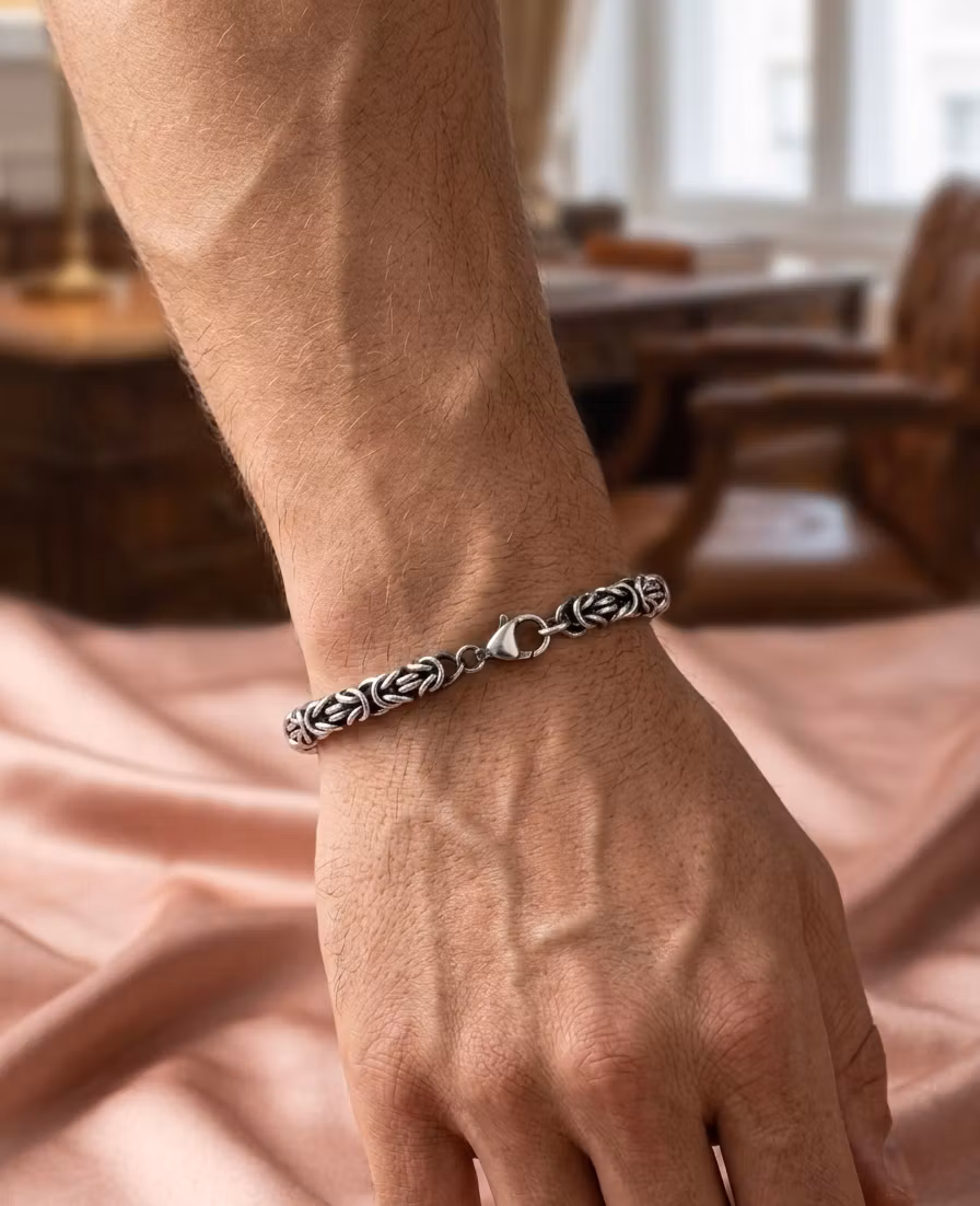 Det här armbandet är skapat för dig som uppskattar både stil och hållbarhet. Den klassiska flätningen, även känd som "Byzantine chain", ger en lyxig och fyllig känsla runt handleden. Med sin tidlösa design fungerar det lika bra som en personlig favorit i vardagen eller som en stilren detalj till festligare tillfällen.