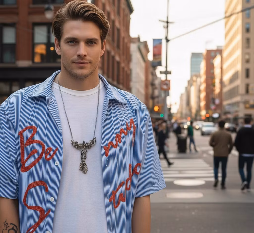 Detta unika halsband är ett riktigt statement-smycke för dig som söker något utöver det vanliga. Designen föreställer den legendariska fågel Fenix med utsträckta vingar och detaljrika fjädrar, vilket symboliserar styrka och förnyelse. Tack vare den noggranna bearbetningen och de mörka kontrasterna i metallen får halsbandet en vacker vintagekänsla som drar blickarna till sig.