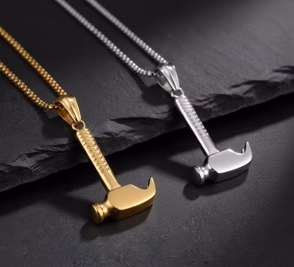 Detta eleganta halsband är skapat för dig som vill bära med dig en symbol för styrka och kreativitet. Med sin detaljrika design föreställande en klassisk hammare blir det snabbt ett samtalsämne och en favorit i smyckeskrinet.