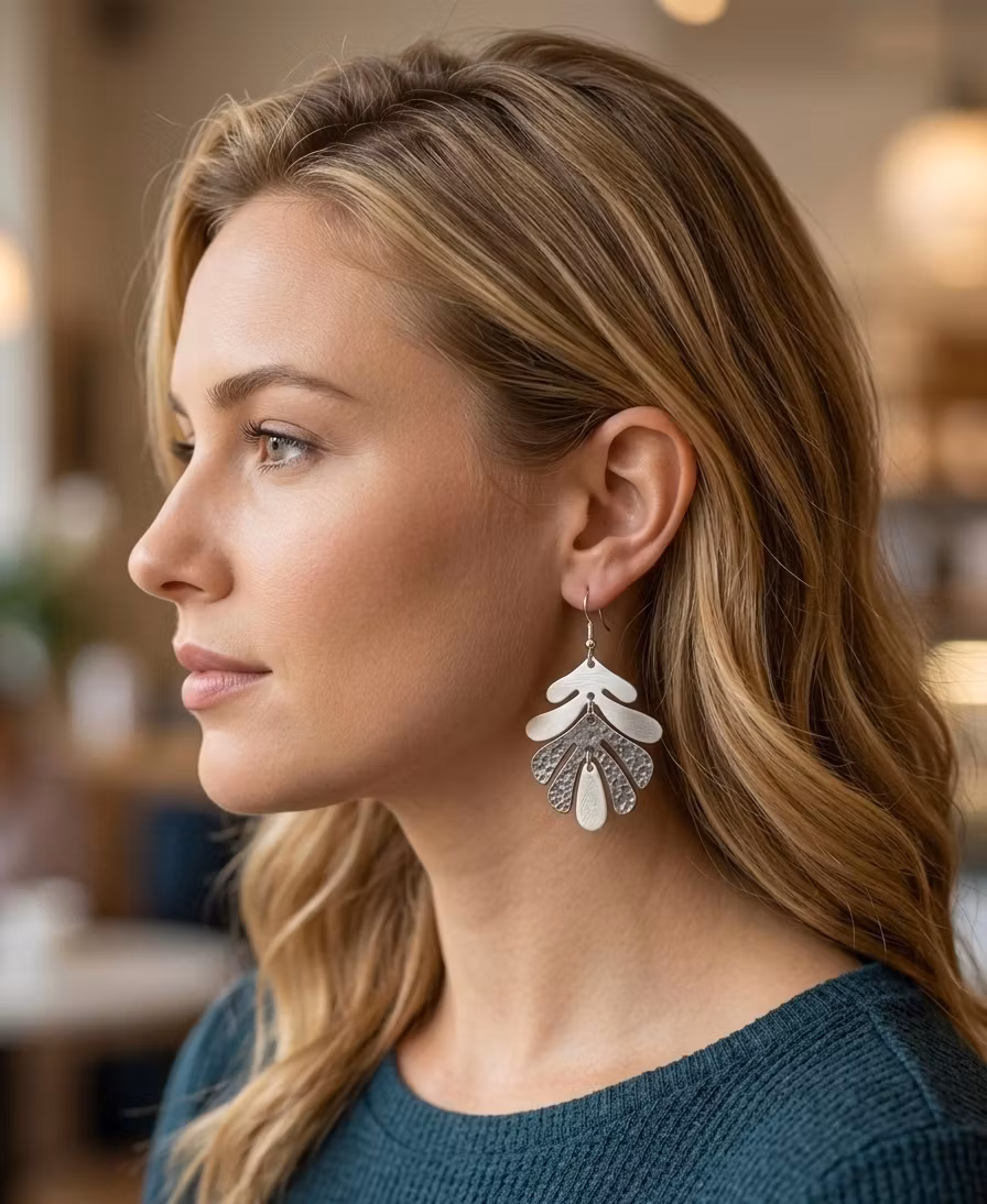 Dessa fantastiska örhängen är designade för dig som älskar detaljer och karaktär. Örhängena består av tre rörliga delar i olika lager som skapar en vacker dynamik när du rör dig. Kontrasten mellan den matta, släta finishen och den rustika, hamrade texturen ger smycket ett organiskt och modernt uttryck.
