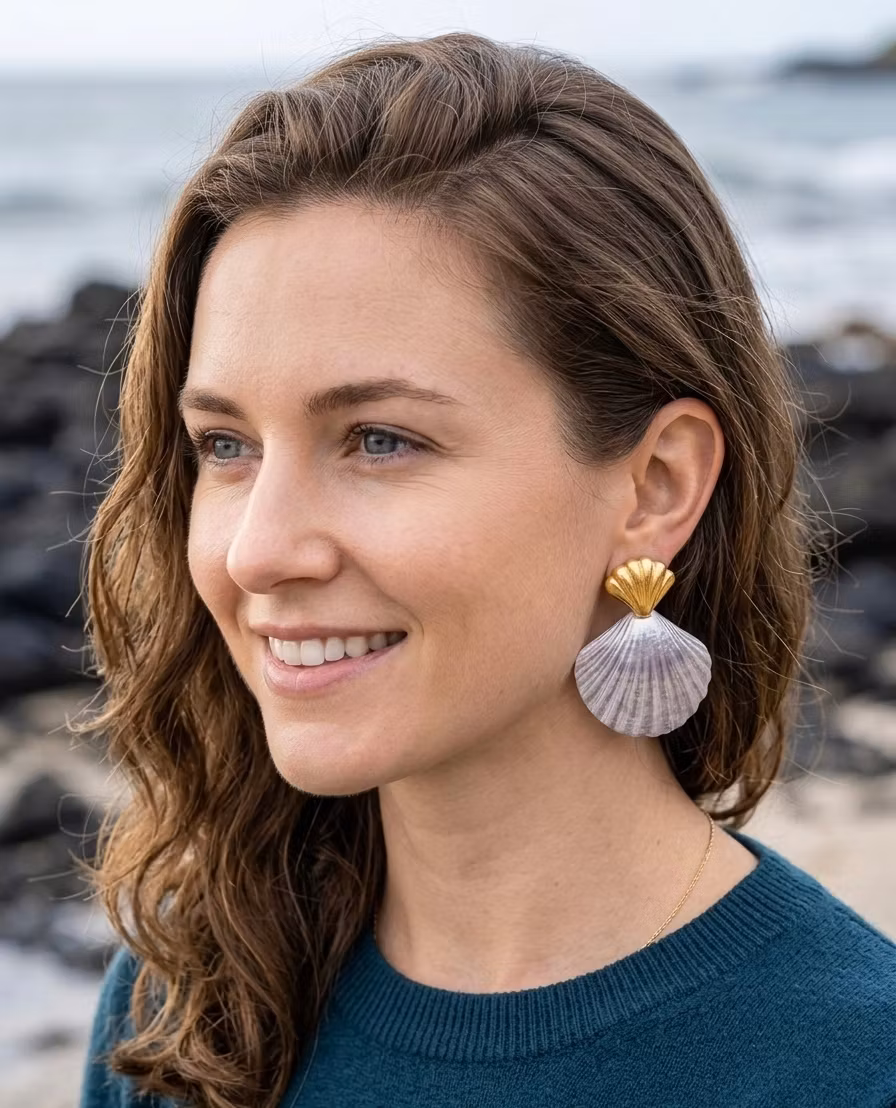 Låt drömmen om sommar och hav leva året runt med våra unika snäckörhängen. Designen är inspirerad av havets naturliga skönhet och har en sofistikerad finish som drar blickarna till sig. Varje par är skapat för att vara både ett statement-smycke och en tidlös favorit i smyckeskrinet.