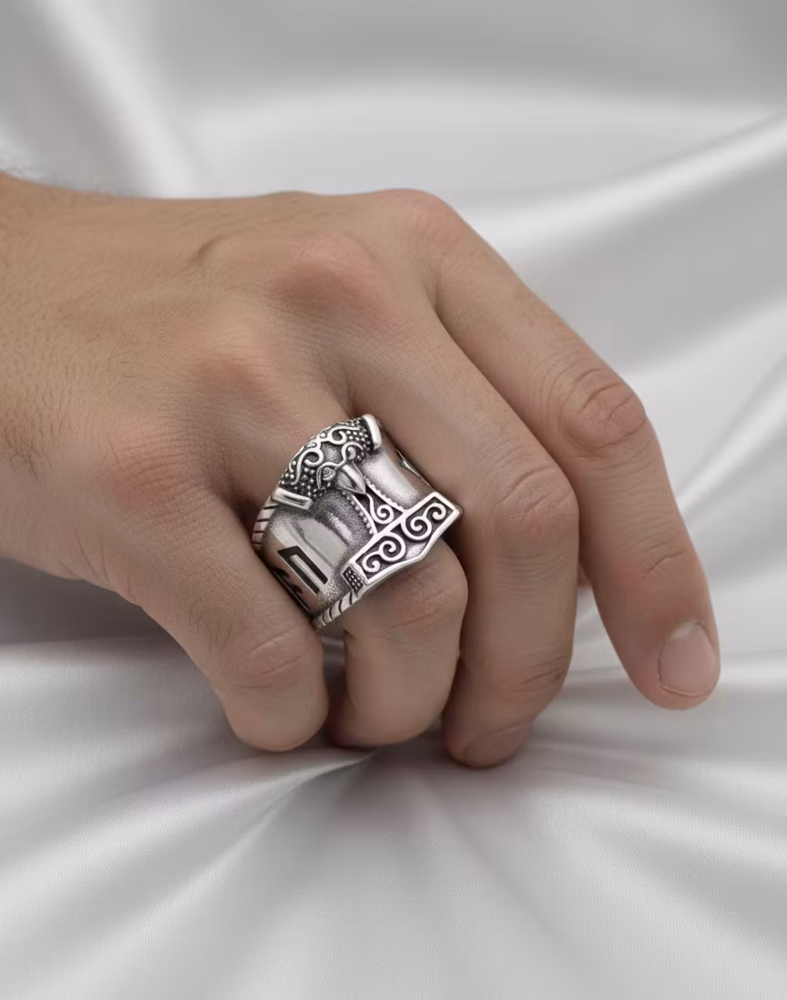 Upptäck kraften i nordisk design med vår exklusiva Mjölnir-ring.
