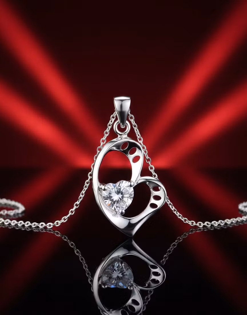 Det vackert formade hjärtat i silver pryds av en gnistrande sten som fångar ljuset från varje vinkel och skapar ett magiskt lyster.