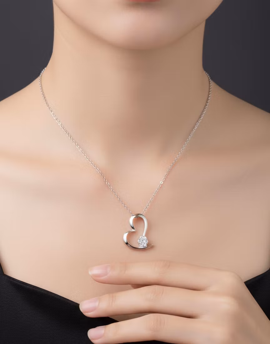 Ett tidlöst halsband med ett vackert hjärta som symboliserar kärlek och renhet. Den gnistrande blomdetaljen ger en extra touch av elegans – perfekt som en gåva till någon du håller kär eller till dig själv.
