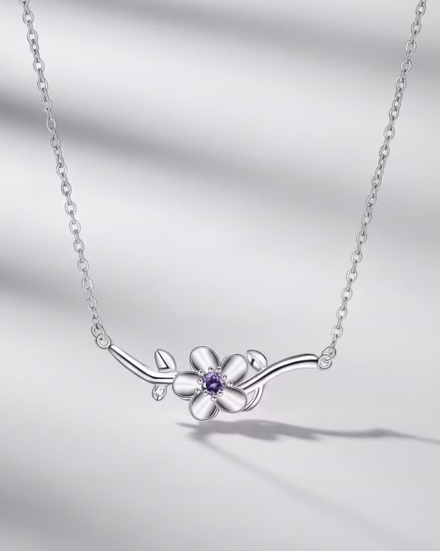 Upptäck charmen i vårt handplockade silverhalsband, inspirerat av vårens första blomning.