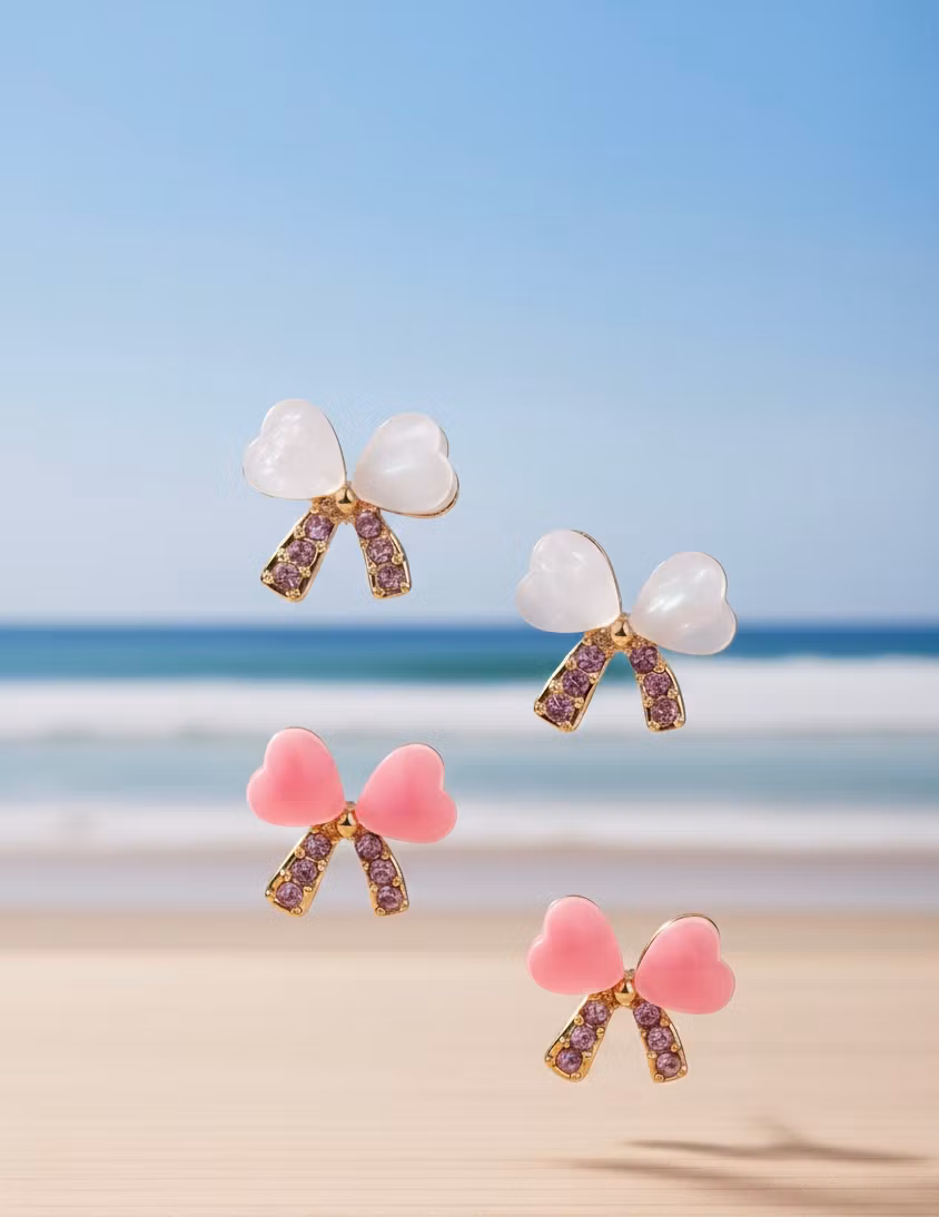 LÄt dig förtrollas av vÄra exklusiva örhÀngen som kombinerar lekfullhet med elegans. Dessa unika smycken Àr designade med tvÄ hjÀrtformade stenar som tillsammans skapar en vacker rosett, prydd med glittrande smÄ detaljer nedtill för en lyxig finish.