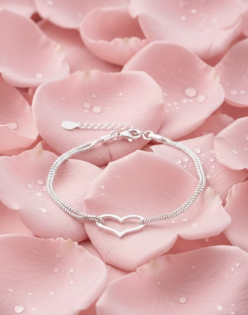 Sprid kärlek med varje rörelse Detta eleganta armband är designat för dig som älskar subtil skönhet och romantisk estetik. Armbandet har en unik dubbelkedja som ger en modern känsla, samtidigt som det klassiska, öppna hjärtat symboliserar ren kärlek och vänskap.