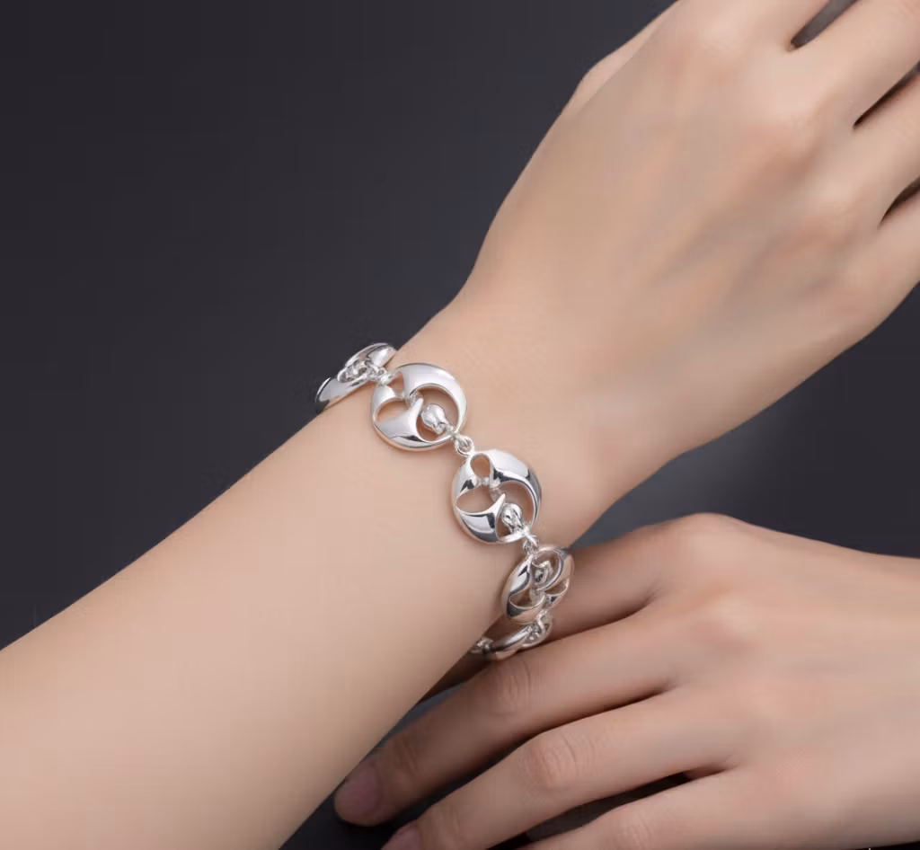 Fånga naturens skönhet med vårt eleganta tulpanarmband i silverfinish. Detta smycke är designat för den moderna kvinnan som älskar detaljrikedom och stil. Armbandet består av en serie sammanlänkade runda berlocker, där varje del bär en konstnärligt utskuren tulpan. Den högblanka finishen reflekterar ljuset vackert och ger en lyxig känsla vid varje rörelse.