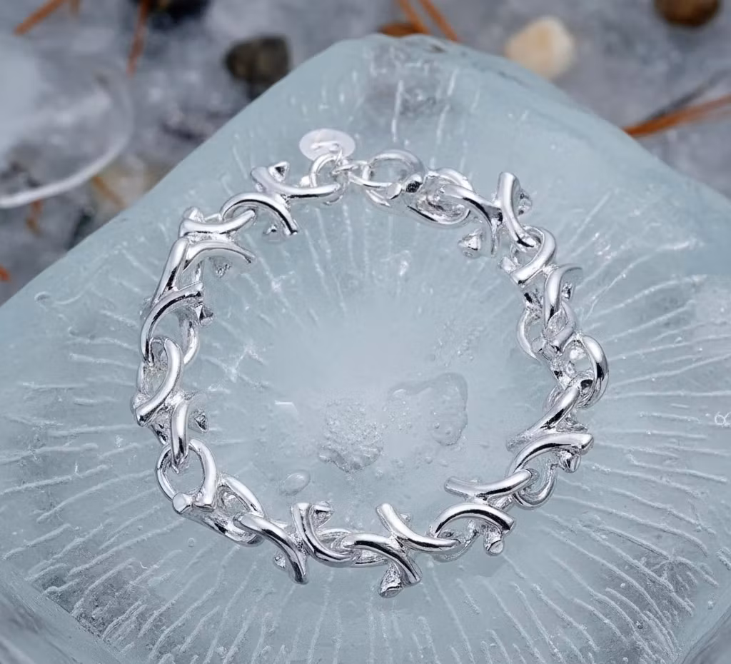 Upptäck den perfekta balansen mellan hantverk och stil. Detta unika armband har en intrikat, sammanflätad design som skapar en vacker struktur och en fantastisk lyster när ljuset faller på det. Varje länk är omsorgsfullt utformad för att ge en mjuk och bekväm känsla mot huden, samtidigt som den robusta konstruktionen gör det till en hållbar följeslagare i många år framöver.