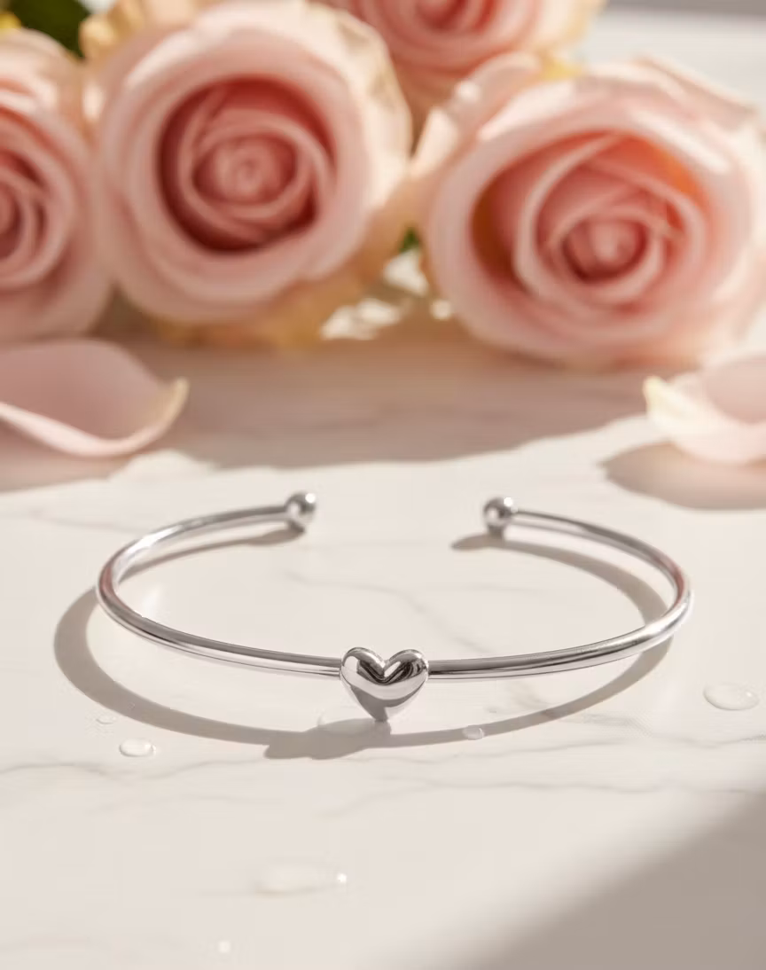 Låt kärleken ta plats i din vardag med vårt armband Hjärtats Elegans. Detta stela armband är skapat med en passion för detaljer och en skandinavisk touch. Det mjuka, polerade hjärtat fungerar som ett vackert blickfång och symboliserar både värme och stilren design.