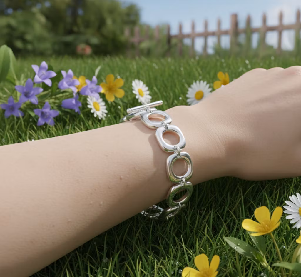 Upptäck den perfekta balansen mellan modern design och klassisk elegans. Vårt unika länkarmband består av vackert polerade, rundade fyrkanter som skapar ett följsamt och lyxigt fall kring handleden. Den högglansiga finishen fångar ljuset på ett fantastiskt sätt och ger en sofistikerad lyster.